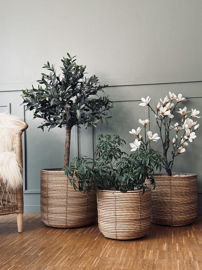 Plantkorgar RATTAN STOR - Set med 3 storlekar