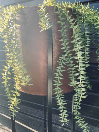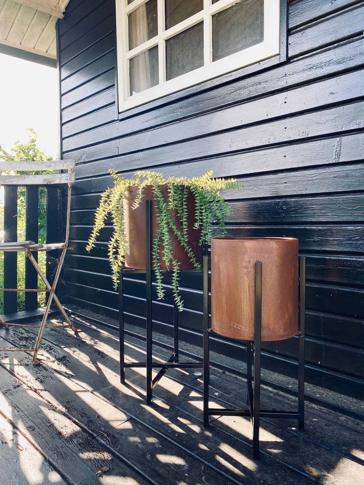 Plantlåda set av 2 – Rost med svarta ben - Rund kruka