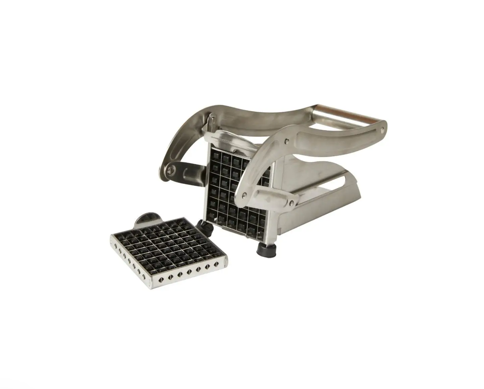 Trött på ojämna pommes frites? Vår pommesfritesskärare löser detta genom att erbjuda precision och valfrihet. Med två olika skär kan du enkelt skapa både tunna och tjocka potatissticks. Utmärkt för dig som vill ha kontroll över resultatet.