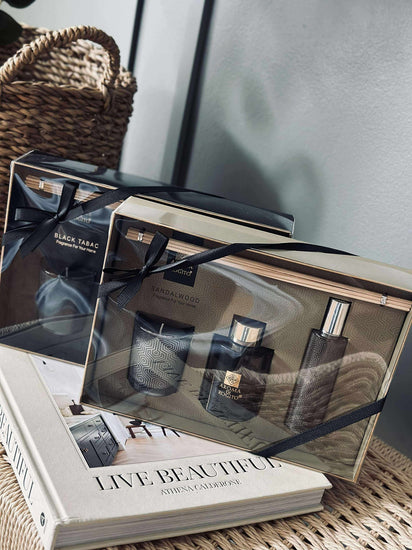 Upplev en enklare väg till ett fridfullt hem med Presentset - MIX. Genom att kombinera dofter och ljus erbjuder detta set en harmonisk atmosfär, idealisk för att varva ner efter en lång dag. Utmärkt för små utrymmen och spontana överraskningar.