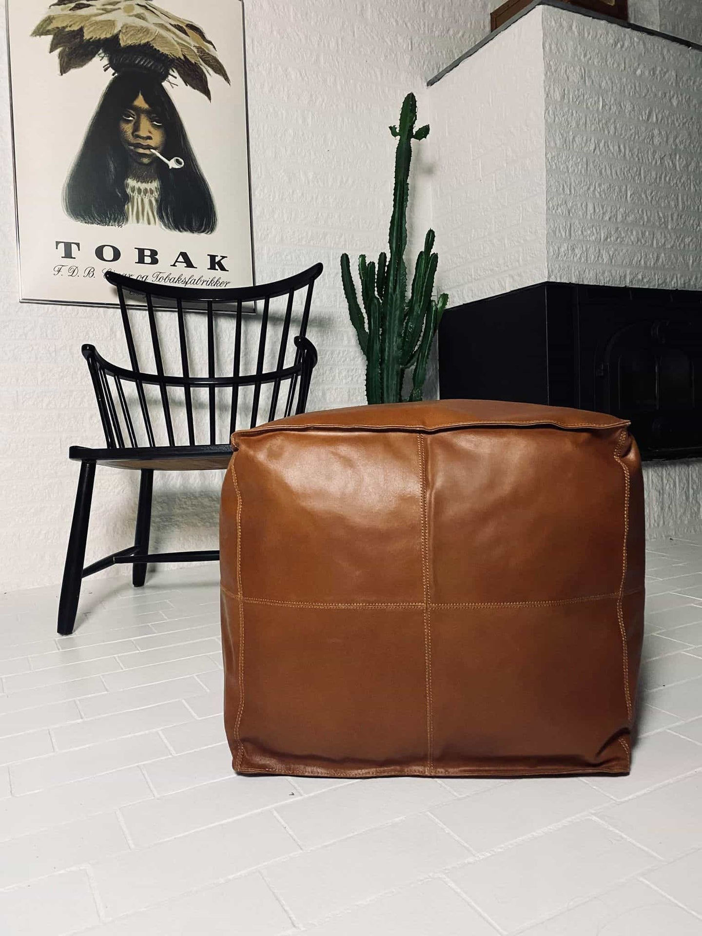 Denna puff i äkta cognacsfärgat läder är en elegant och praktisk detalj för ditt hem. Den robusta fyrkantiga formen och den klassiska designen ger ett tidlöst uttryck som passar i ett modernt hem med känsla för kvalitet och stil.