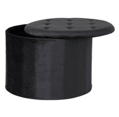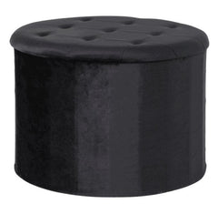 Denna puff i svart sammet är en stilfull och praktisk tillägg till ditt hem. Med dess mjuka, sammetslen yta och tuftade design, tillför den ett lyxigt inslag till din inredning.
