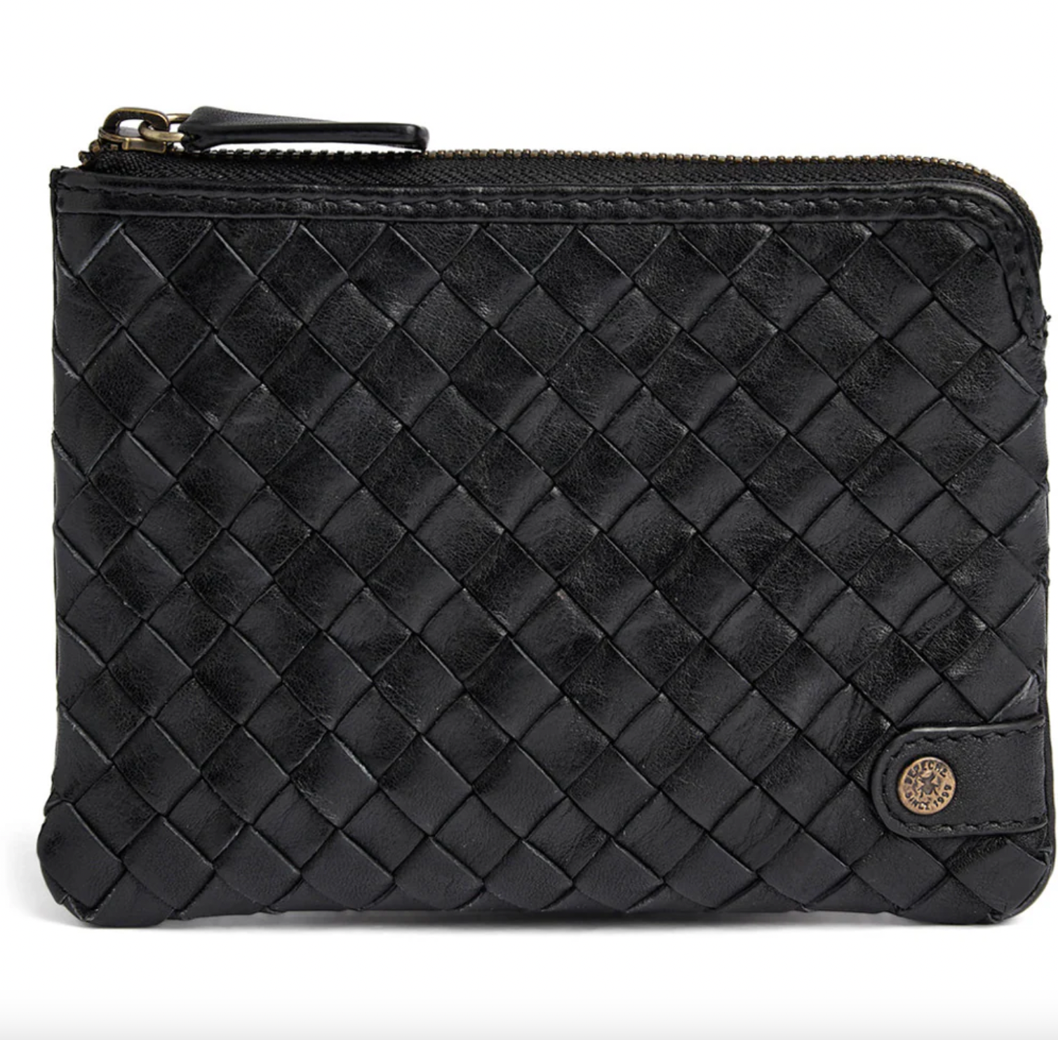 Plånboken är tillverkad i 100% kalvskinn och har en struktur/vävd yta. Den svarta färgen framhäver flätmönstret och ger ett enkelt utseende som är lätt att matcha med dina övriga accessoarer.