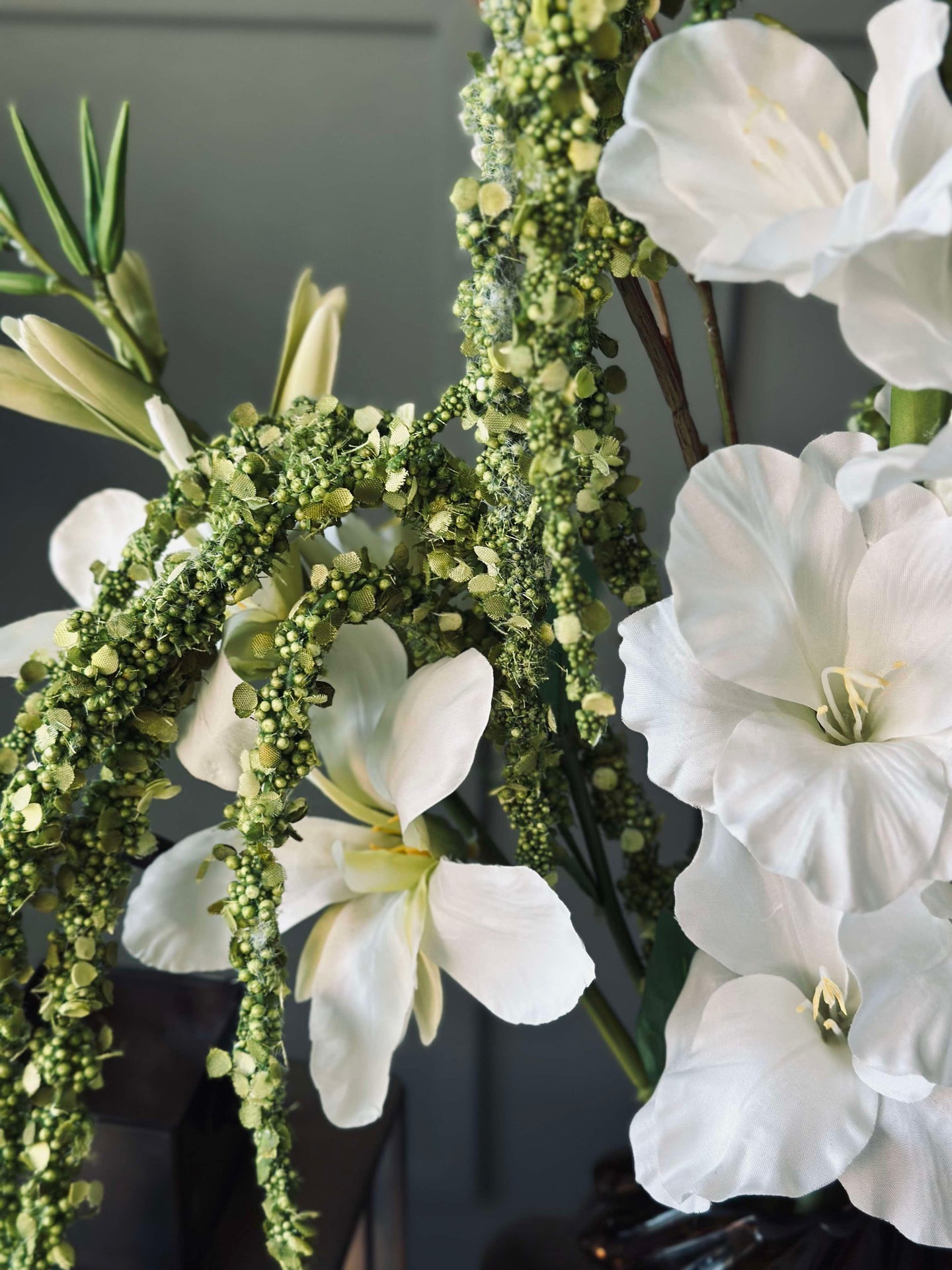 Med en imponerande längd på 115 cm ger dessa konstgjorda blommor en slående visuell effekt i vilket rum de placeras. Den generösa längden möjliggör en mängd olika arrangemang, från att fylla höga vaser till att skapa dramatiska centerpieces. Dessutom kräver de minimalt underhåll, vilket gör dem till ett praktiskt val för långvarig inredning.