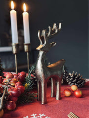 Guldrenen är tillverkad av antik guldmetall, vilket ger den en subtil glans och en tidlös känsla. Denna metalliska finish reflekterar ljuset på ett sätt som skapar en varm atmosfär i rummet. Den antika guldmetallen bidrar också till en robust och hållbar konstruktion, vilket gör att dekorationen behåller sin skönhet över tid.