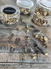 Lägg till en touch av sofistikerad stil till din inredning med Ritstift RETRO. Dessa guld ritstift är en diskret men ändå effektiv lösning för att piffa upp och organisera dina korkplattor och hessian-tavlor.