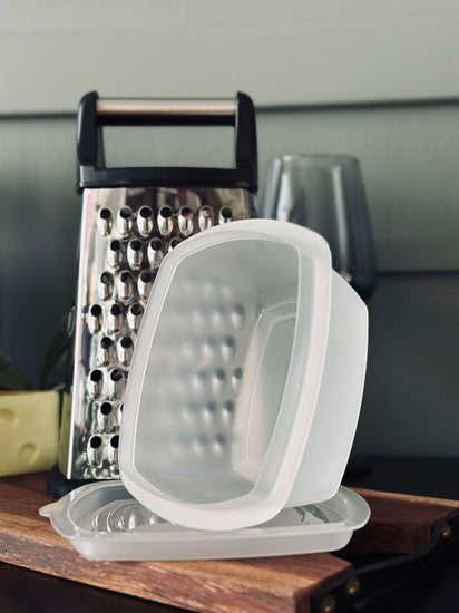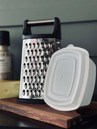 Trött på riven ost som hamnar överallt? Vårt rivjärn med uppsamlare gör det enkelt att riva och samla maten på ett ställe. Ingen mer stökig arbetsyta – njut av en smidigare matlagningsupplevelse.