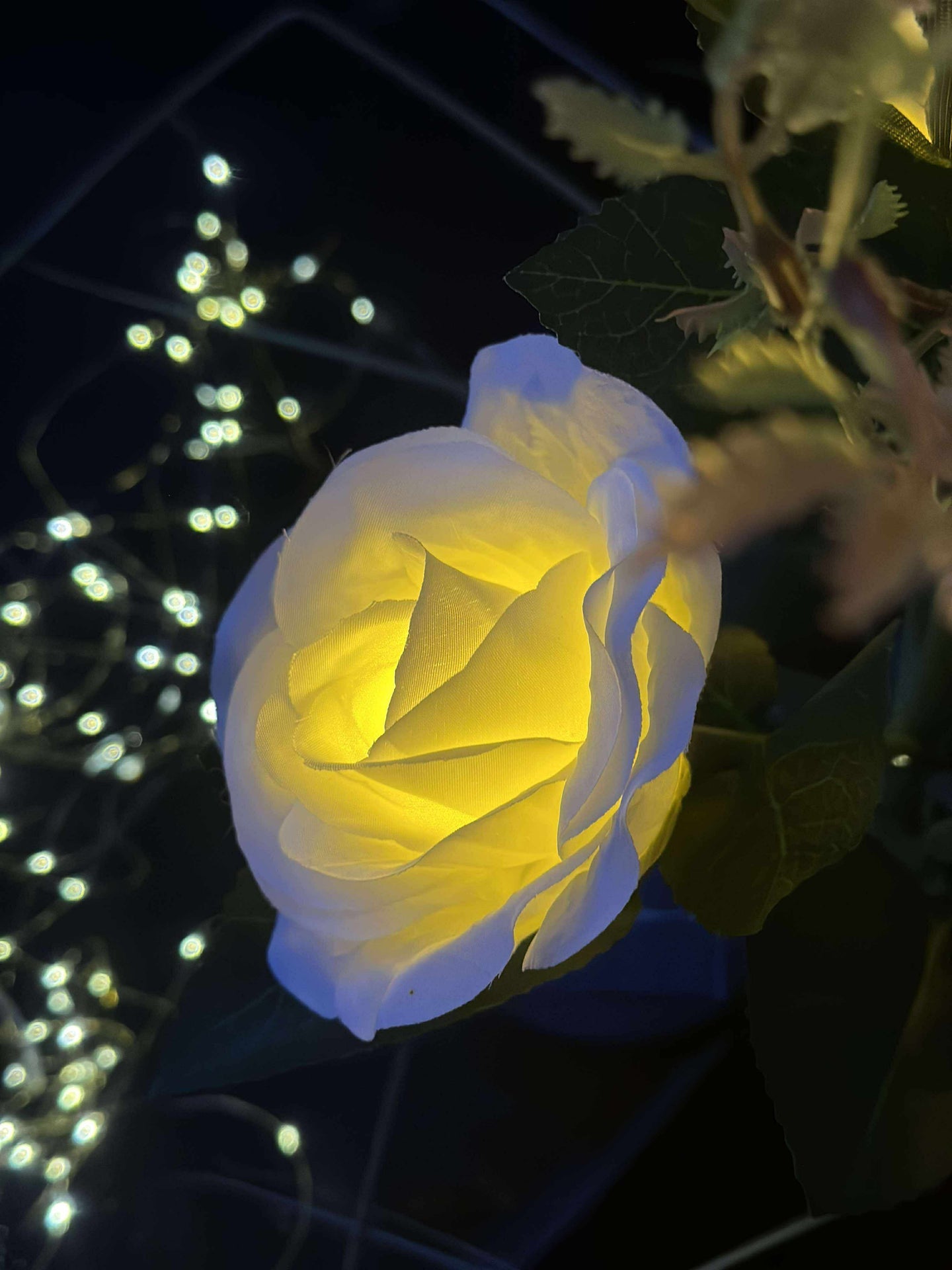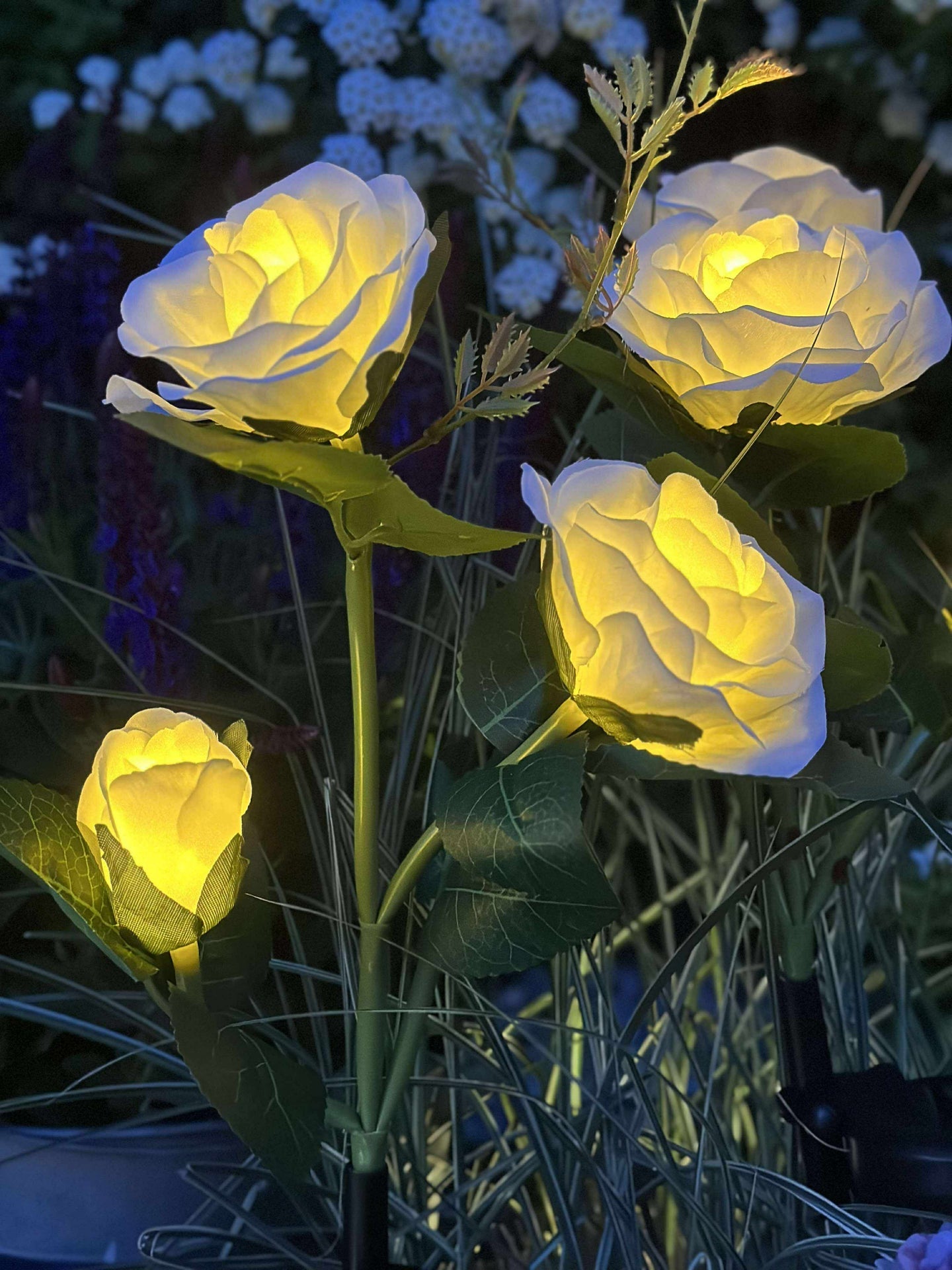 Trött på att solrosdekorationer vissnar? Med Ros med solceller - Vit får du en hållbar lösning. Denna produkt ger dig flexibla alternativ för att anpassa och placera, och den sköter sig själv med solcellsuppladdning.