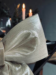 Med ståltråd på baksidan blir det enkelt att montera eller hänga upp dekorationssløjfen precis där du önskar. Denna funktion ger flexibilitet i placeringen, vilket gör att du kan anpassa dekorationen efter olika miljöer och behov. Ståltråden säkerställer att sløjfen sitter stabilt och håller formen, vilket bidrar till en långvarig och tilltalande visuell effekt.