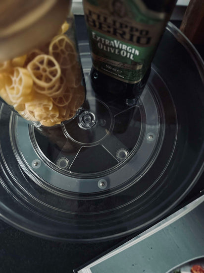 - Optimerar köket och skapar utrymme med ett roterande fat med hög kant