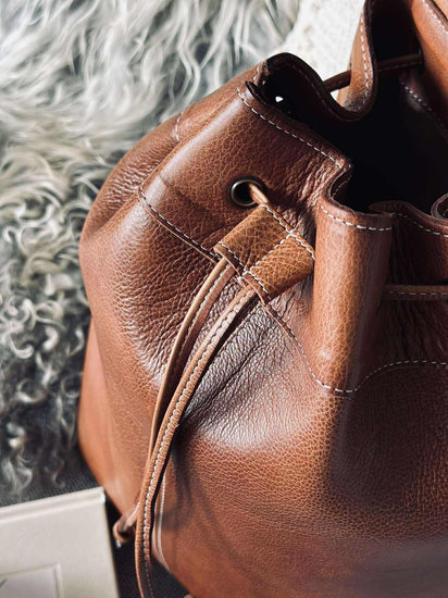 Rygsäcken är tillverkad av urbanläder, ett naturligt, slipat koläder som behåller det ursprungliga narvmönstret. Detta ger väskan en tidlös och autentisk känsla, samtidigt som den är robust och slitstark. Det bevarade narvmönstret gör varje exemplar unikt och ger en personlig prägel till din stil. Urbanläder åldras med värdighet, vilket gör att ryggsäcken blir vackrare med tiden.
