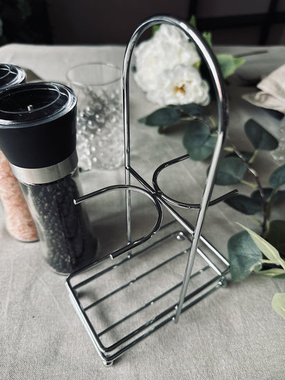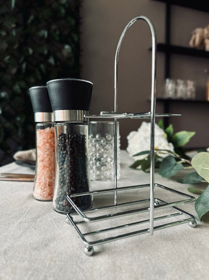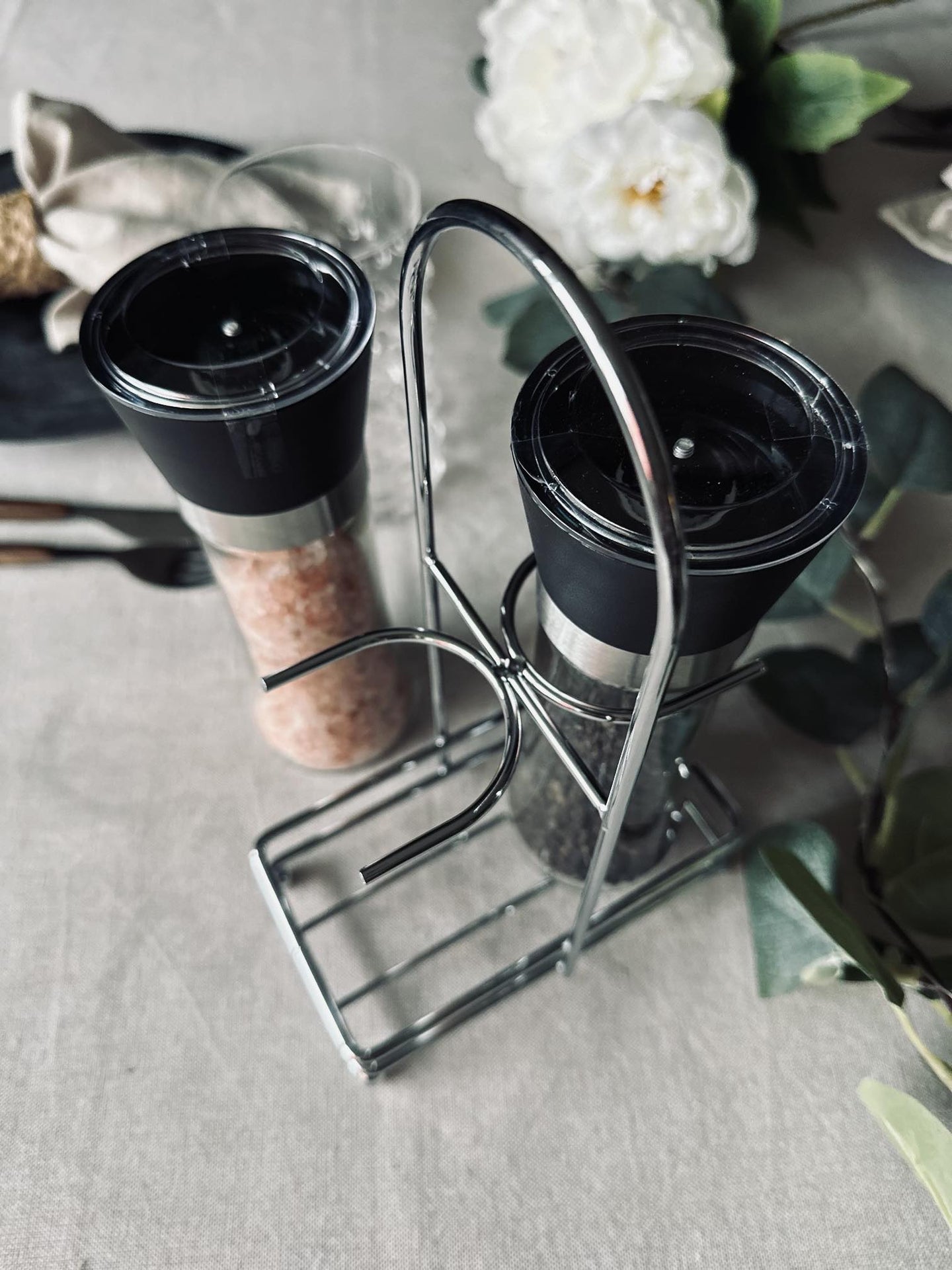 Addera stil och funktion till ditt kök med detta salt- och pepparset i en praktisk hållare. Perfekt för att hålla bordet organiserat och alltid ha kryddor till hands, skapar det en smidig matlagnings- och serveringsupplevelse.