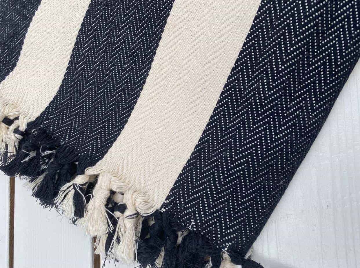 Sängöverkast 220×240 – Svart / Vit bred rand