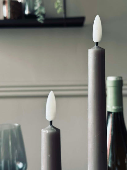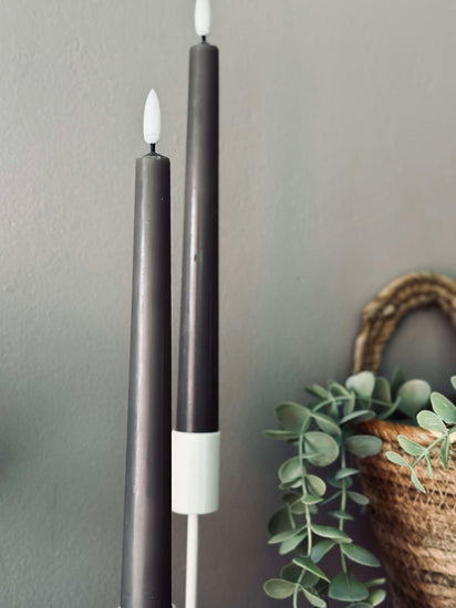 Trött på att ständigt byta batterier i dina dekorationsljus? Detta set med två gråa vaxljus, med realistisk flamma och fjärrkontroll, erbjuder en enkel lösning. Justerbara timeralternativ förenklar användningen och skapar en behaglig atmosfär.