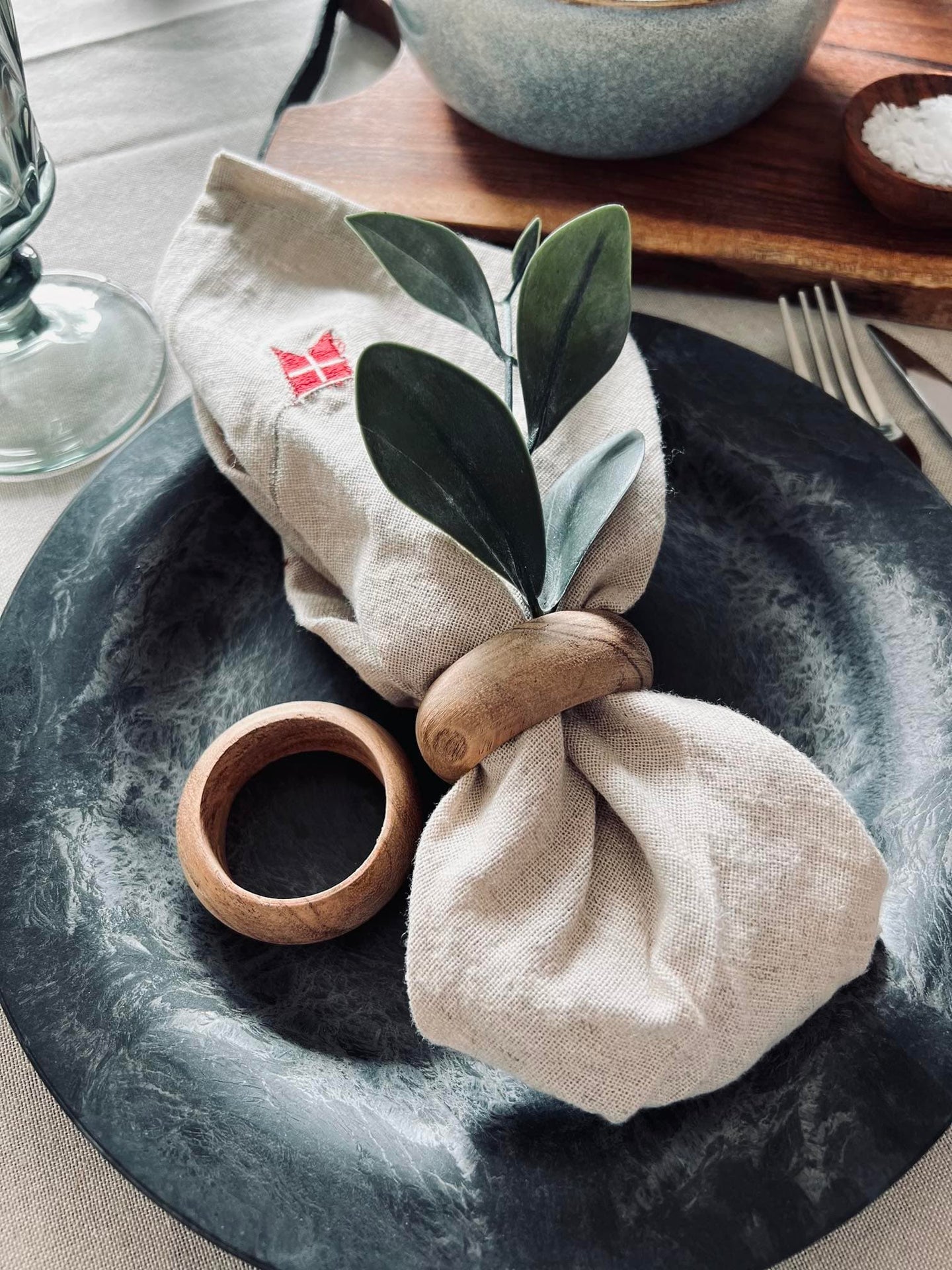 - Dukar vackert med akaciaträ servettring