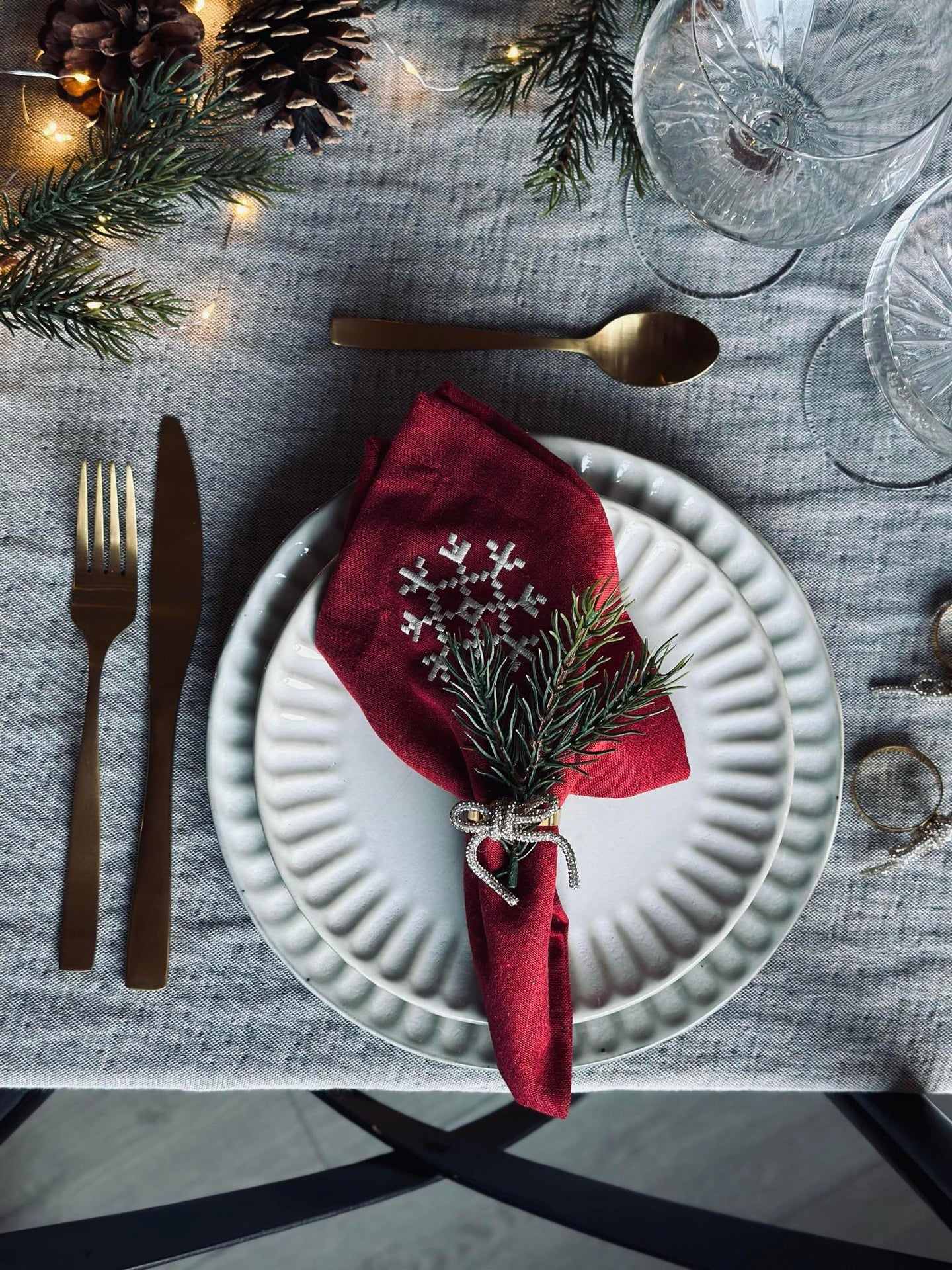 - Guldfärgade servettringar