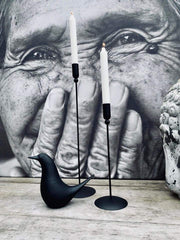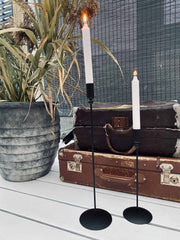 Våra ljusstakar i metall är tillverkade i en vacker svart nyans, vilket ger dem en sofistikerad och tidlös känsla. De är särskilt utformade för att passa perfekt för kronljus, vilket ger en mjuk och inbjudande belysning. Deras robusta konstruktion säkerställer att de står stadigt, vilket bidrar till en säker ljusupplevelse.