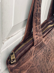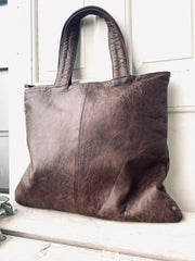 - Vackert vintageutseende med fin läderstruktur, stängs med dragkedja i toppen