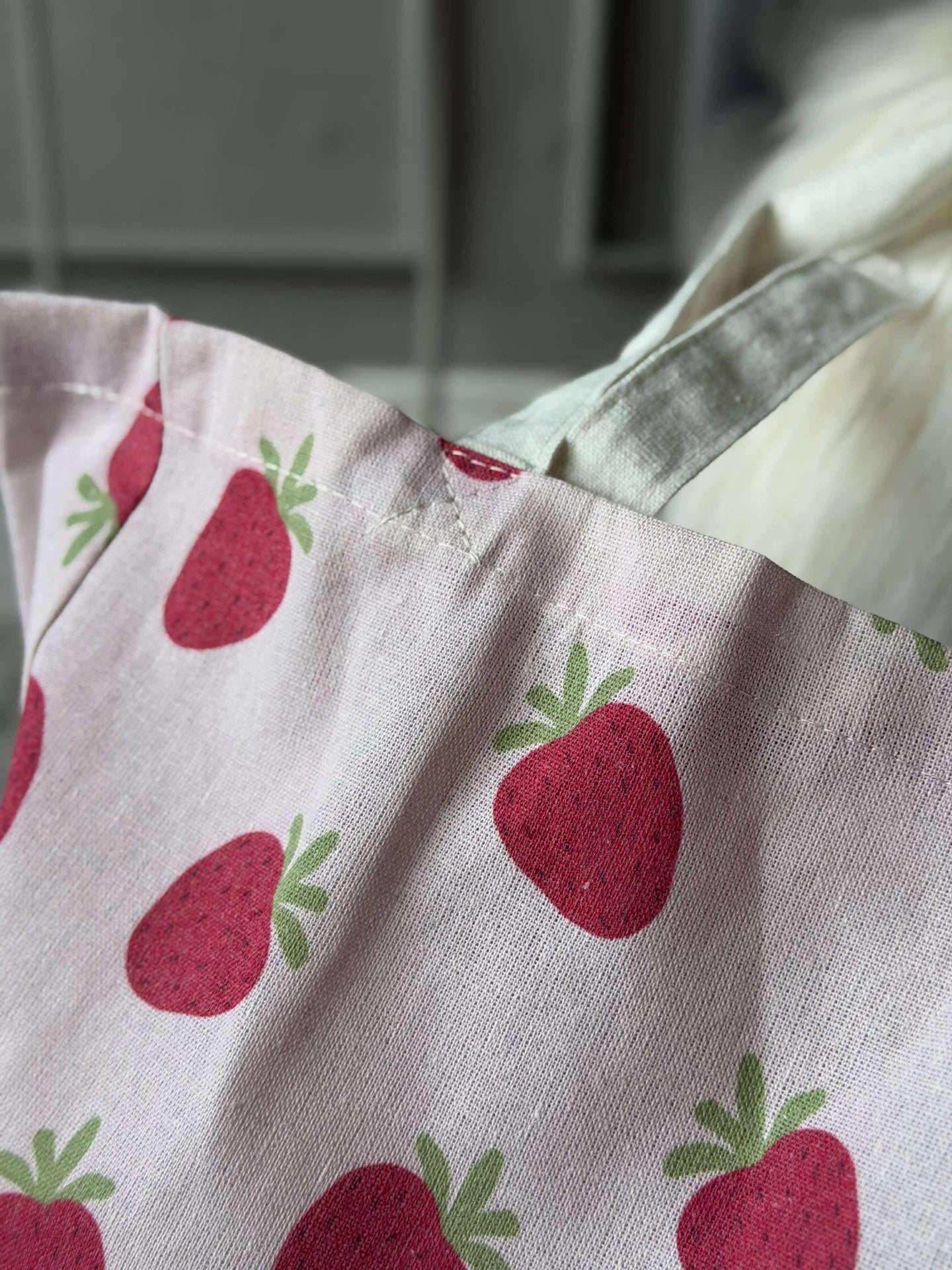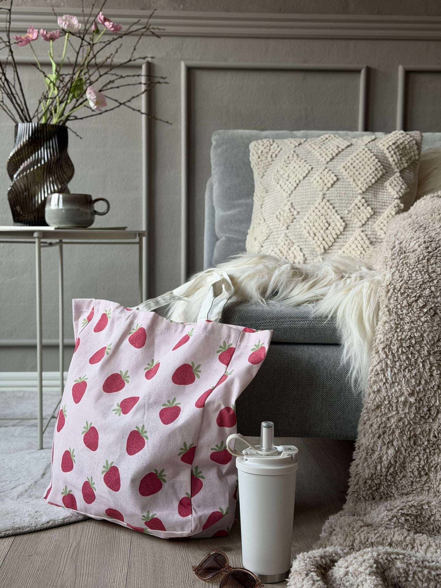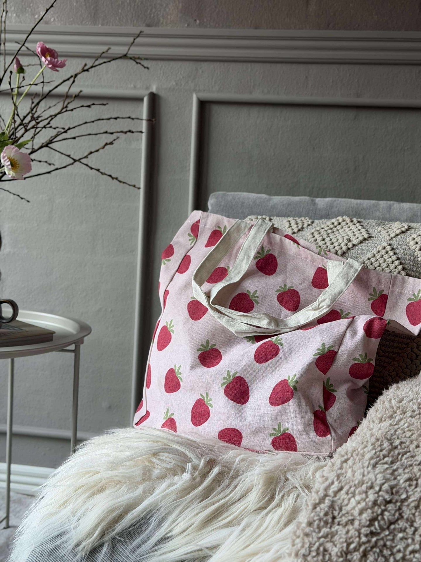 Shopper Strawberry är en shopper som gör det enkelt att ha vardagens saker med sig. Den är gjord i bomull och finns i en rosa färg med print, som ger väskan ett lekfullt och iögonfallande uttryck. Ett självklart val när du vill kombinera en avslappnad look med en väska som kan användas om och om igen.