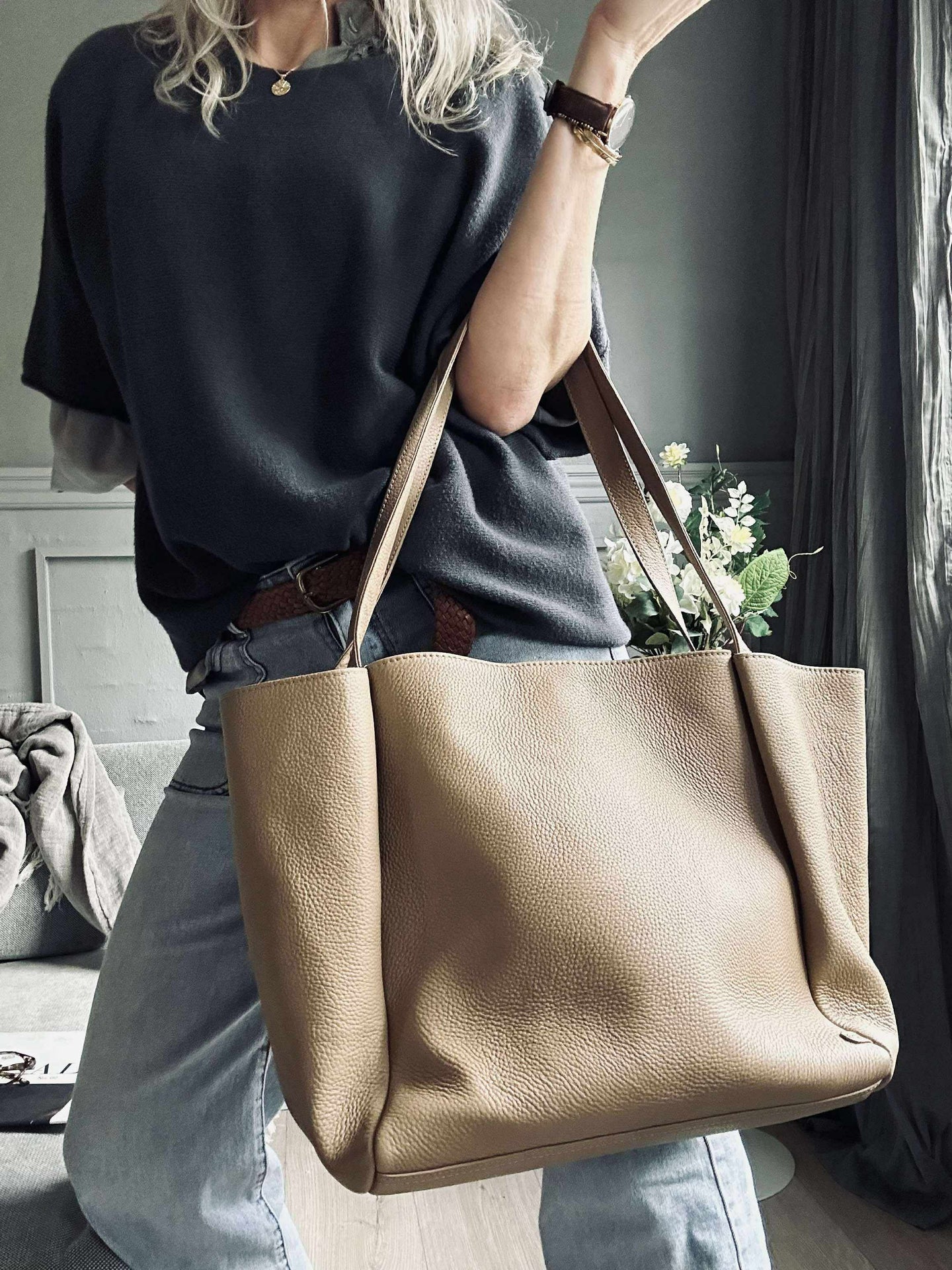 Föreställ dig en dag där du enkelt når dina nödvändigheter utan att rota runt. Med vår shoppingväska i läder blir varje utflykt smidigare och mer effektiv. Låt den stilrena designen och den smarta funktionaliteten förändra din vardag till det bättre. Upptäck skillnaden själv och upplev bekvämlighet på ett nytt sätt.