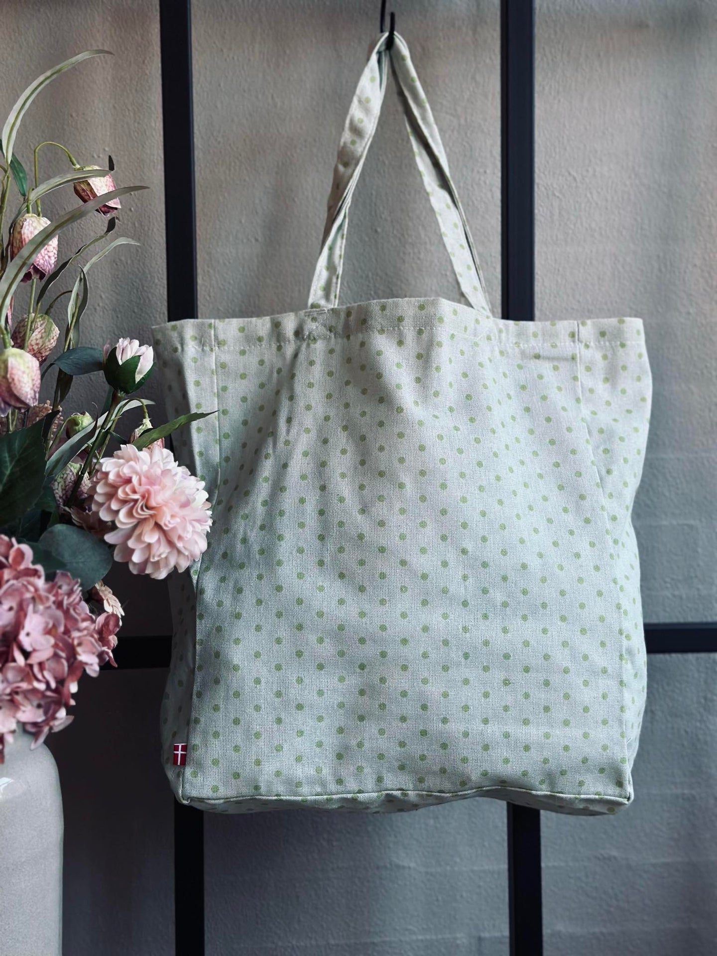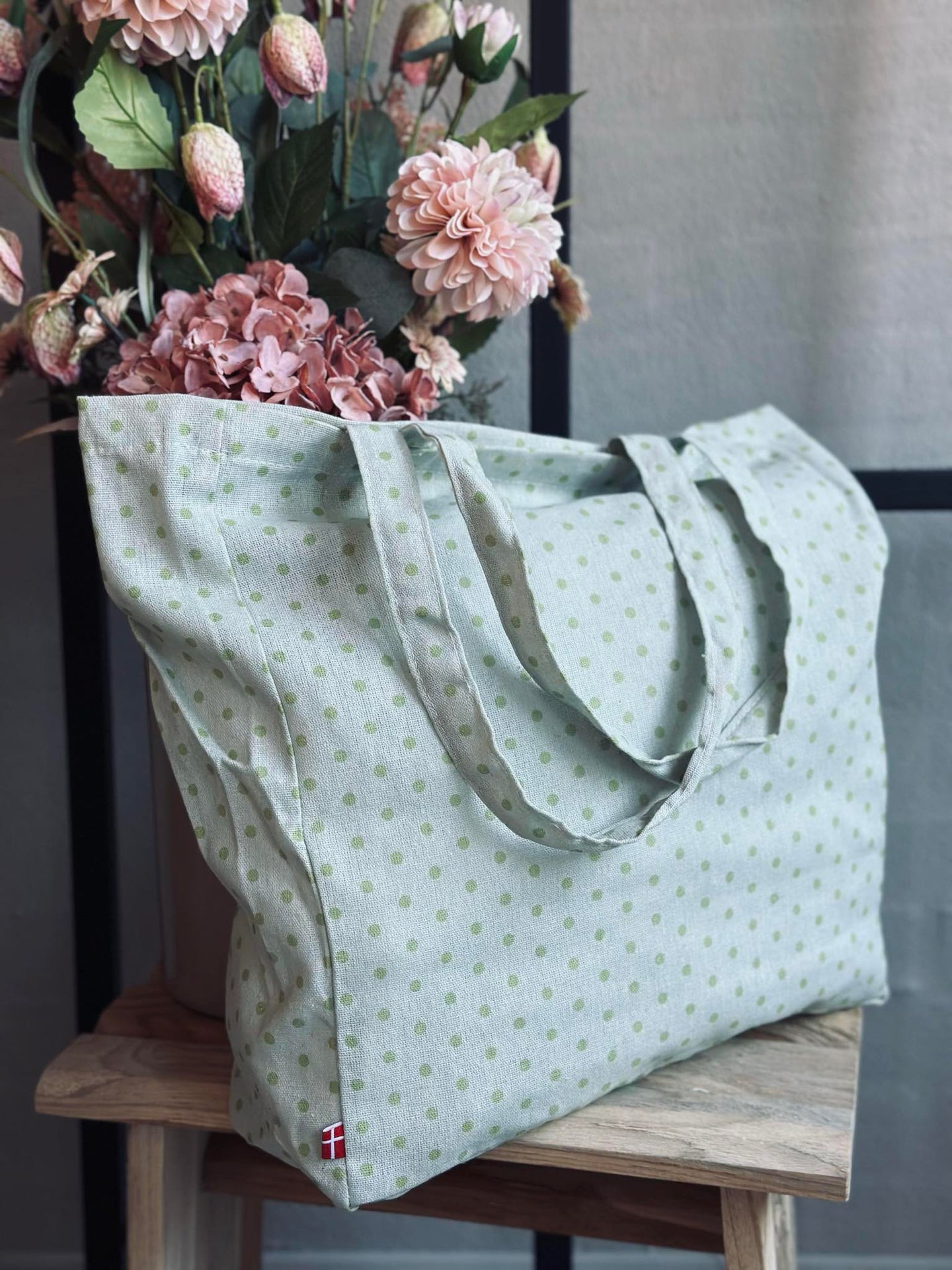 Trött på att bära hem tunga varor i svaga plastpåsar? Shoppingväska - Gröna prickar erbjuder en hållbar och bekväm lösning för dina dagliga inköp. En pålitlig följeslagare som enkelt tar hand om både små och stora ärenden.