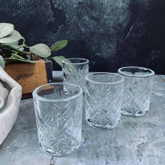 - Inkluderar förpackning med 4 kraftigt slipade shotglas