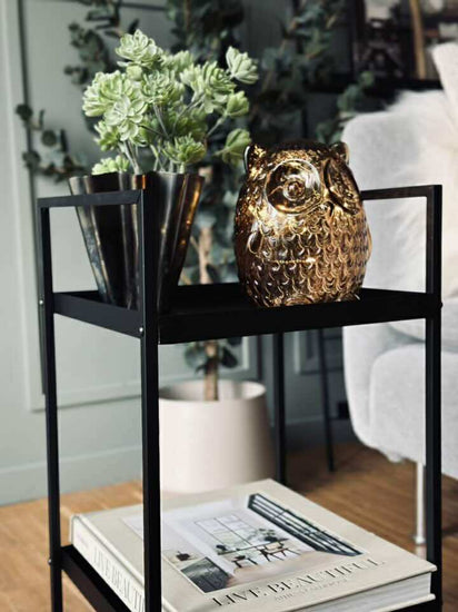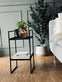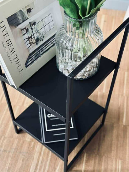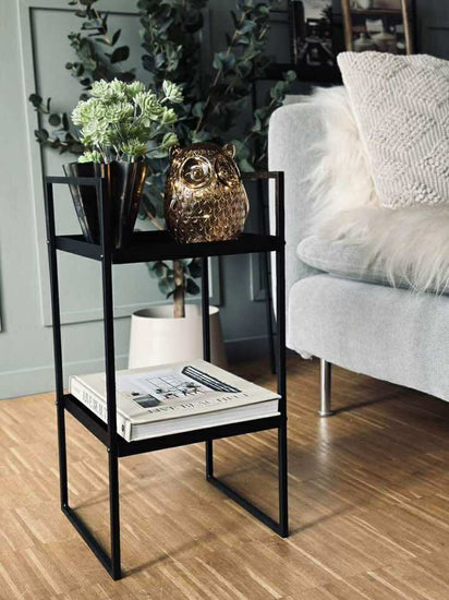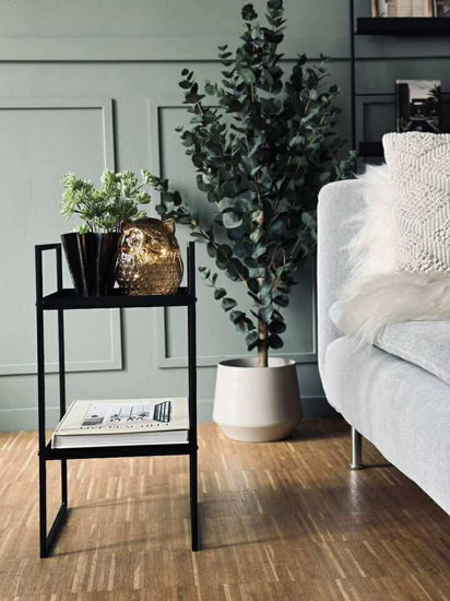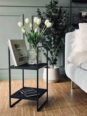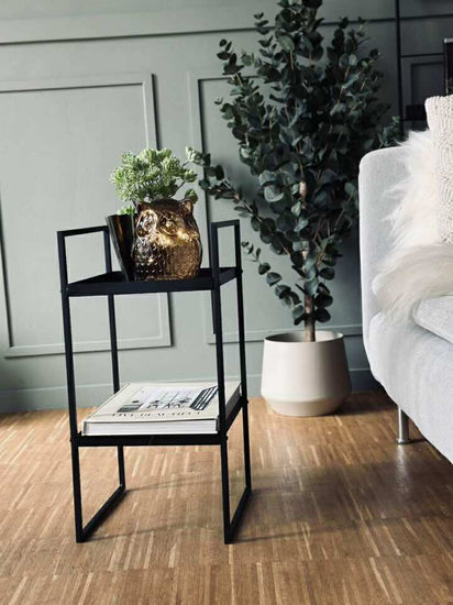 Sidobordet, tillverkat av svart metall, erbjuder en robust och stilren lösning för alla rum. Den mörka metallen ger en tidlös estetik som enkelt kan kombineras med olika inredningsstilar. Dess hållbara konstruktion säkerställer långvarig användning samtidigt som den bidrar till en modern och sofistikerad känsla i ditt hem. En praktisk detalj som förenar funktion och design på ett harmoniskt sätt.