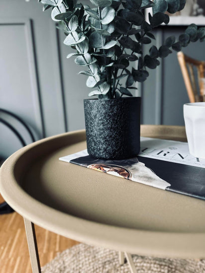 Längtar du efter en förändring i ditt hem? Sidobordet i metall och senap kan vara ditt svar. Dess unika färg skapar en modern känsla medan dess robusta konstruktion garanterar långvarig användning. En snygg och praktisk lösning för ditt vardagsrum.