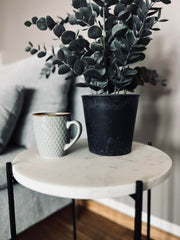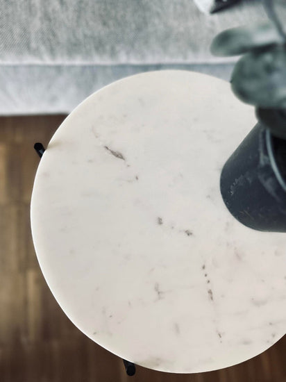 Sidobordet har en bordskiva i äkta marmor, vilket ger inte bara en lyxig känsla, utan även en unik design på grund av marmorns naturliga mönster. Dessutom är marmor ett slitstarkt material som tål tidens tand. Bordskivan är enkel att rengöra och behåller sin lyster under lång tid. Detta gör sidobordet till ett praktiskt och hållbart val för ditt vardagsrum.