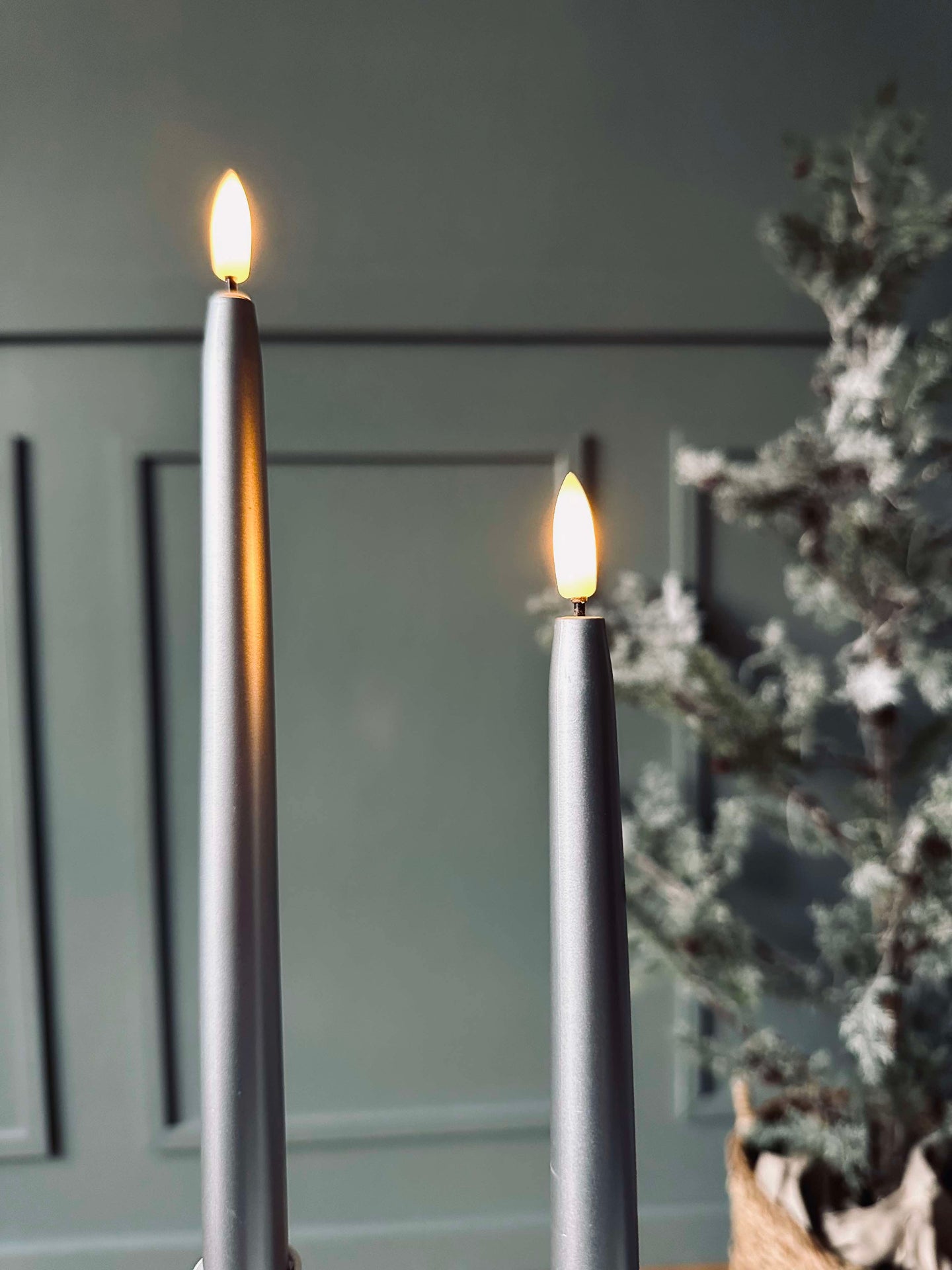Den stilrena silverfärgen på LED-ljusstakarna bidrar till en modern och sofistikerad atmosfär i varje rum. Färgen reflekterar ljuset på ett subtilt sätt, vilket skapar en behaglig och mjuk belysning. Dessutom passar silvertonen väl in i olika inredningsstilar, från minimalistiska till mer traditionella miljöer, vilket gör den till ett mångsidigt val för hemmets alla utrymmen.