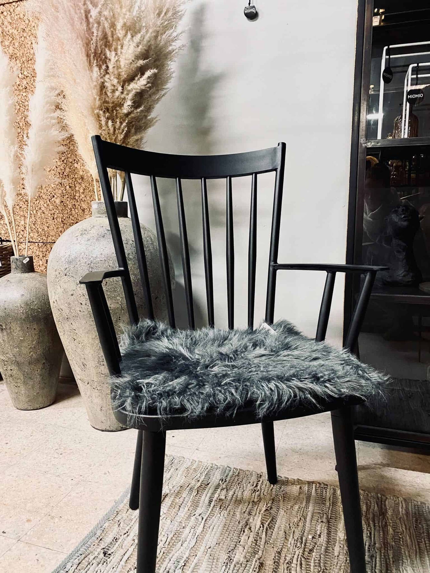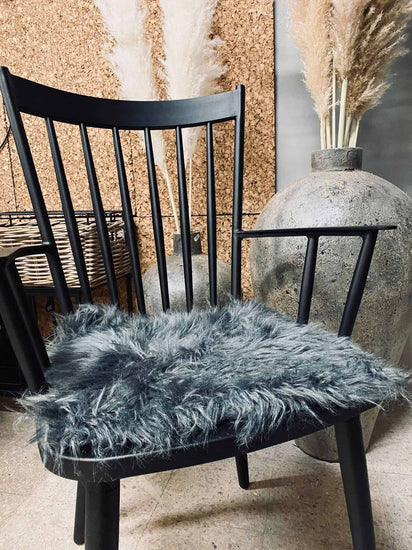 Den mörkgrå färgen på sitsdynan passar perfekt in i de flesta inredningsstilar och ger en elegant touch till rummet. Den imiterade pälsen ger även en exklusiv känsla till din heminredning.