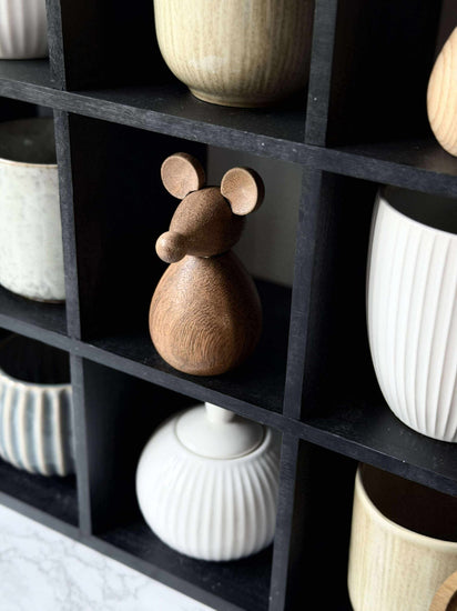Letar du efter en subtil prydnad som kompletterar ditt hem? Denna sittande mus erbjuder en varm och jordnära accent, idealisk för att ge ditt utrymme en touch av naturlig charm samtidigt som den smälter in utan att dra för mycket uppmärksamhet.