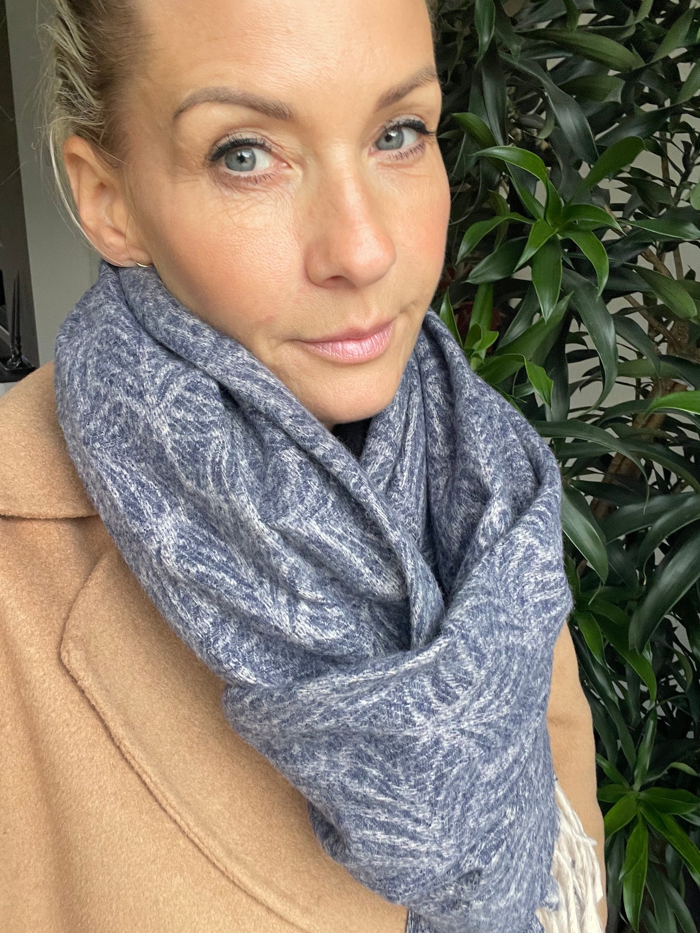 Halsduk Helena - Denim är en mjuk halsduk i en blå deniminspirerad nyans med en vävd struktur. Det är ett enkelt, stilrent accessoar som ger ett lugnt uttryck och är lätt att kombinera med både vardagskläder och ytterplagg.