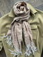 - Tygsjalen har en längd på 200 cm och en bredd på 65 cm
