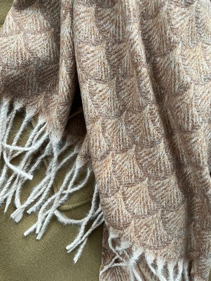 Denna tygsjal kombinerar 80 % viskos och 20 % ull, vilket ger en behaglig känsla och en lätt, mjuk textur. Viskosen bidrar till en mjuk och följsam struktur, medan ullen tillför en lätt värme. Kombinationen av dessa material ger ett tyg som både är andningsbart och värmande, vilket gör det lämpligt för olika säsonger och användningsområden.