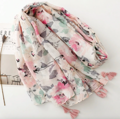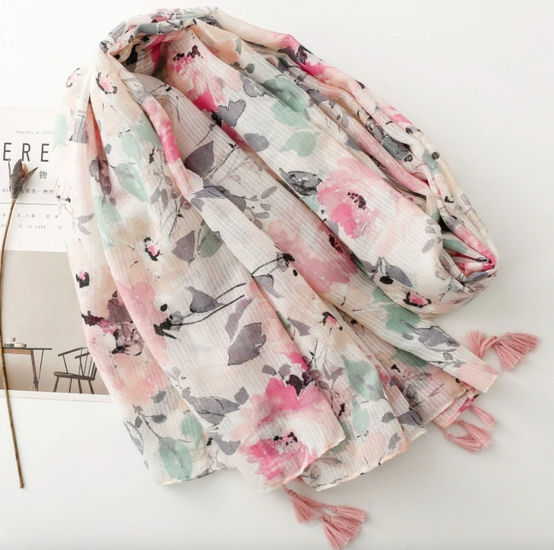 Denna sjal med tryck är tillverkad av 50 % bomull och 50 % viskos, vilket ger en mjuk och behaglig känsla mot huden. Blandningen av dessa material gör sjalen både lätt och andningsbar, samtidigt som den erbjuder en viss värme. Bomullens hållbarhet och viskosens släthet kombineras för att skapa ett plagg som är både funktionellt och stilfullt.