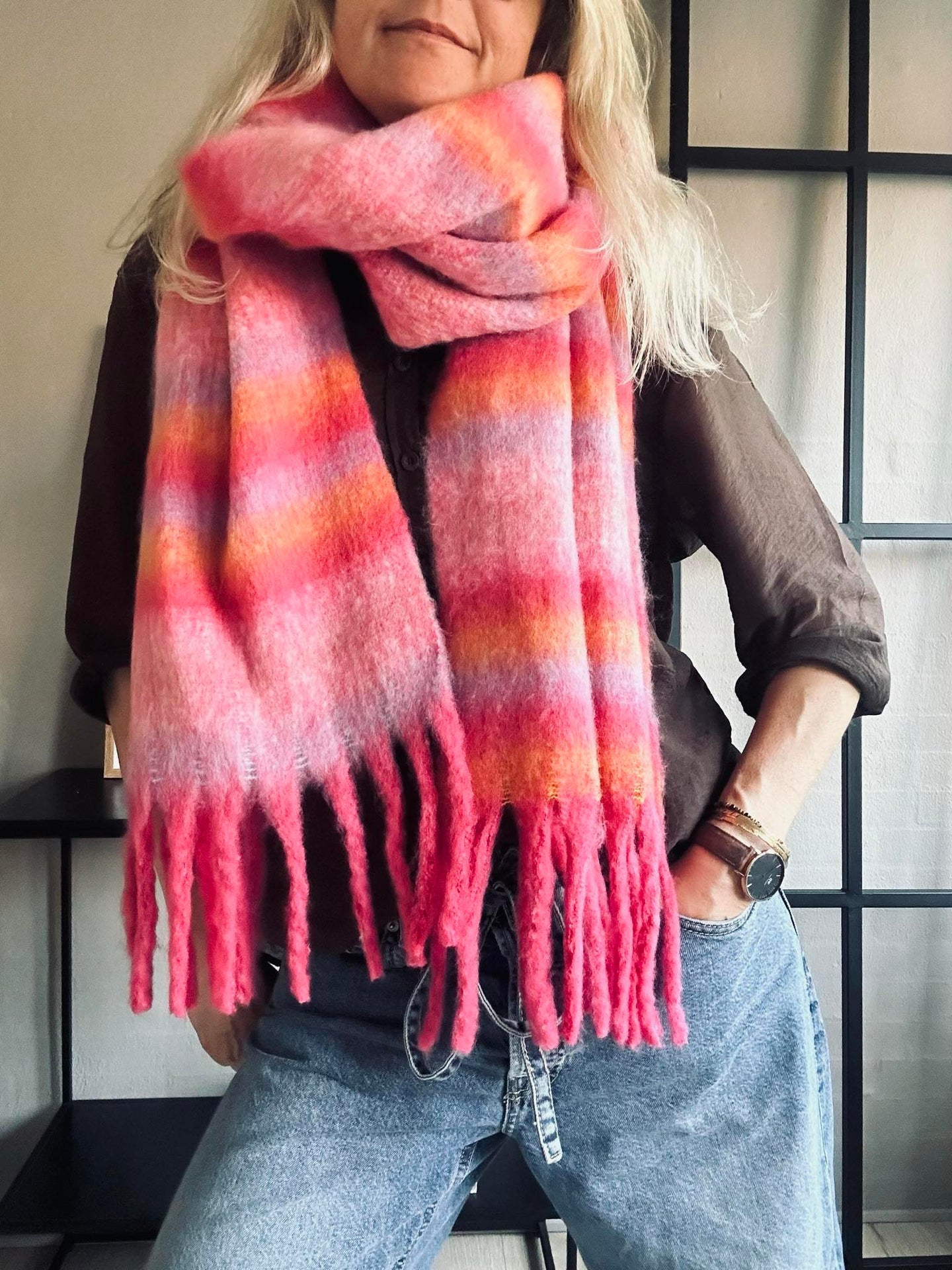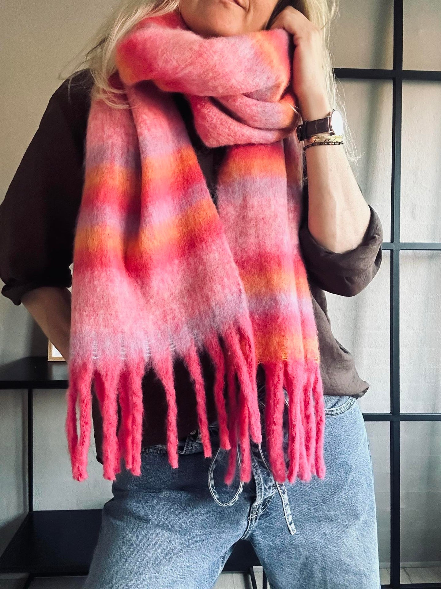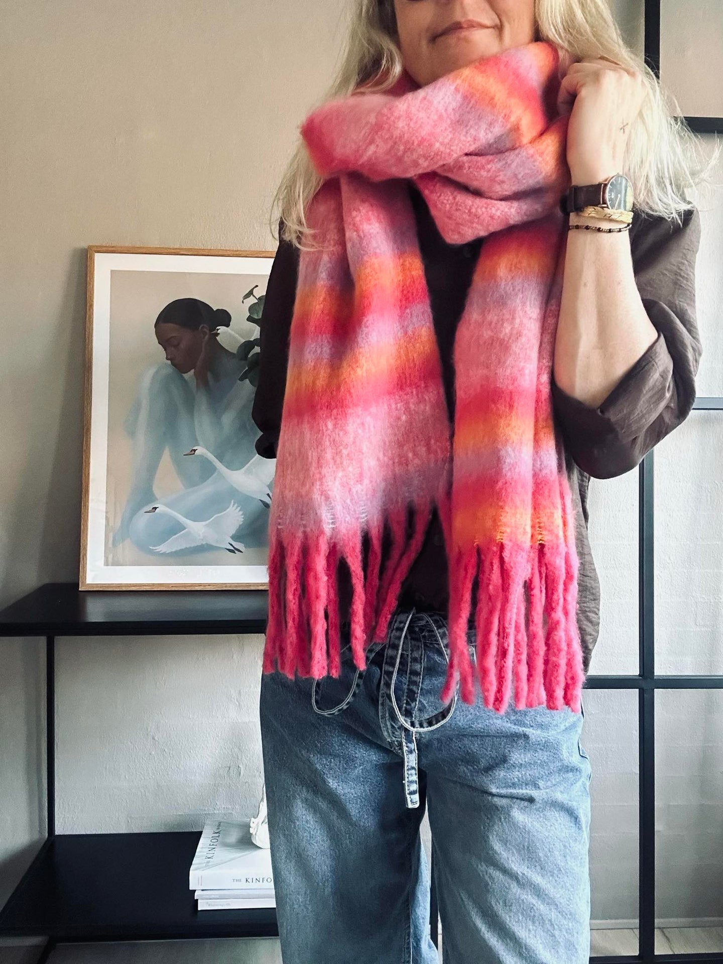 Uppgradera din vardagsstil och gör livet enklare med sjal Ninna i rosa. Låt denna praktiska och stilrena accessoar bli din trogna följeslagare i alla situationer. Ge dig själv möjligheten att njuta av både stil och funktion i en och samma produkt.