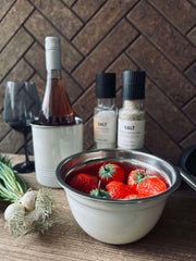 Skålen är tillverkad av rostfritt stål, vilket ger den en hållbar och robust konstruktion. Materialet är resistent mot fläckar och rost, vilket gör att skålen behåller sitt utseende över tid. Dessutom är rostfritt stål lätt att rengöra och underhålla, vilket sparar tid i köket. Skålen är också hygienisk, eftersom ytan inte absorberar smaker eller lukter.