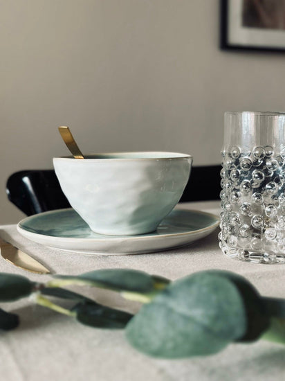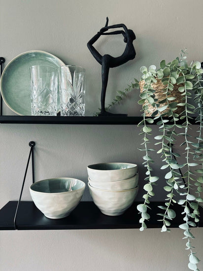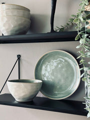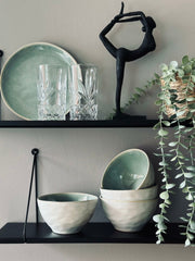 Tillverkad av vackert mintfärgat stengods