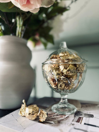 Sök inte längre för att hitta en snygg lösning för att hålla dina små chokladbitar på plats. Skål på fot med lock är en praktisk och stilren detalj som lägger till charm i ditt hem, samtidigt som den håller dina godsaker säkra och snyggt förvarade.