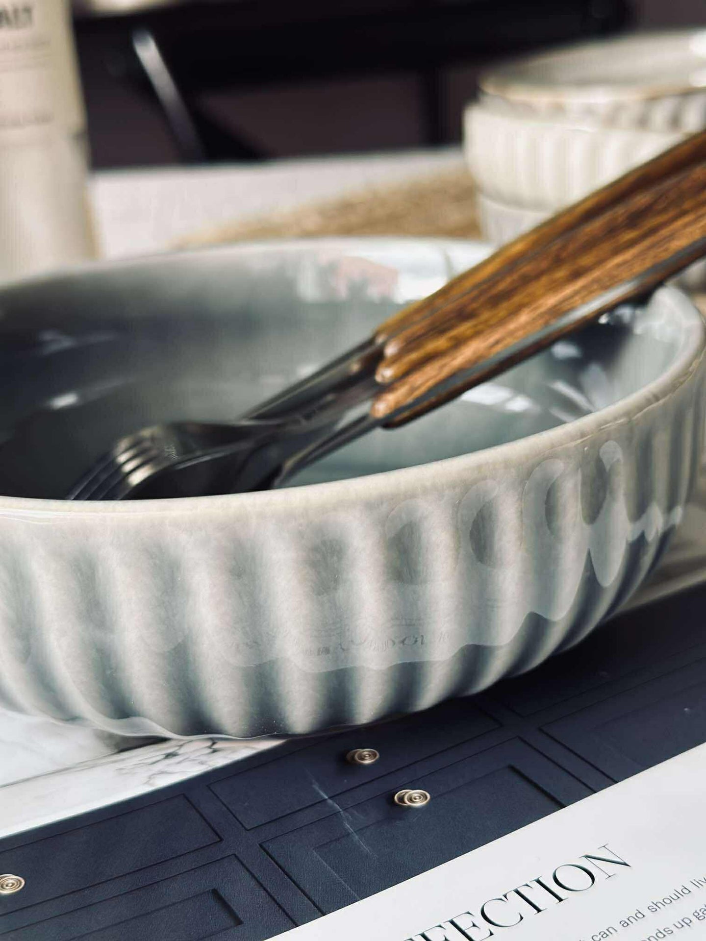 Njut av enkelheten och stilen med denna vackra skål i stengods i ditt kök. Låt den vara din pålitliga följeslagare vid varje måltid och skapa en avslappnad och funktionell atmosfär i ditt hem. Ge din matlagning en touch av elegans och gör vardagen lite mer speciell.
