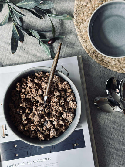Stengods är ett hållbart material som ger skålen en robust och pålitlig känsla. Dess täta struktur gör den motståndskraftig mot fläckar och repor, vilket innebär att den behåller sitt utseende över tid. Skålen klarar av både varma och kalla temperaturer, vilket gör den mångsidig för olika köksbehov. Materialets naturliga isolering håller innehållet vid rätt temperatur längre.