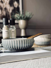 När du vill servera en enkel vardagsmiddag eller en avslappnad frukost kan en pålitlig skål vara oumbärlig. Denna skål i blått stengods ger en touch av stil och funktionalitet, vilket gör den användbar i olika kökssammanhang.