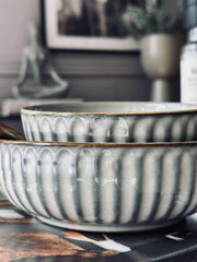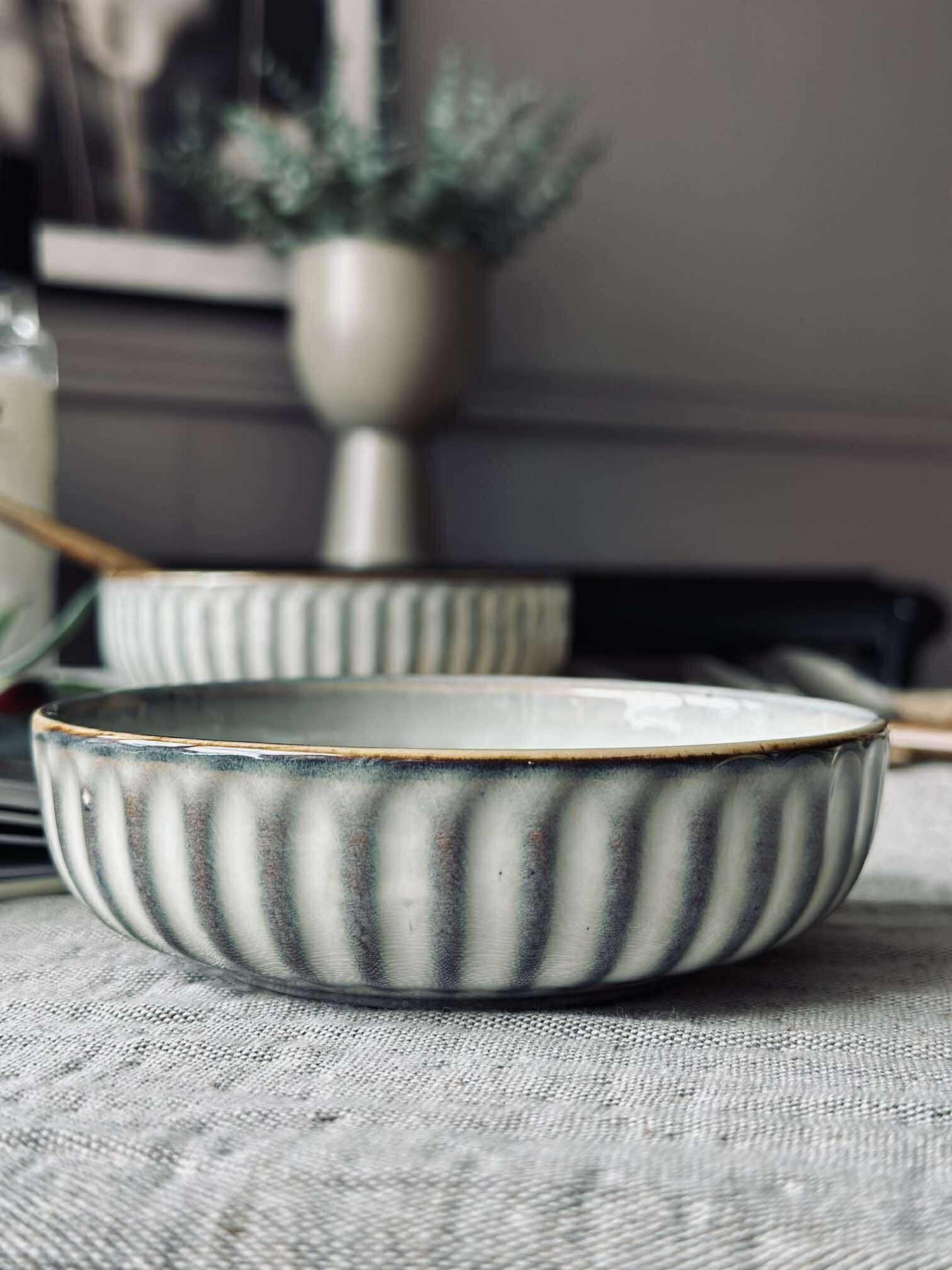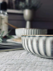 Ge dina serveringar en touch av elegans med Skål VIGA randig stengods. Uppgradera din köksupplevelse idag och låt varje måltid bli en minnesvärd och stilfull upplevelse. Våga skapa vackra serveringar som imponerar på dina gäster!