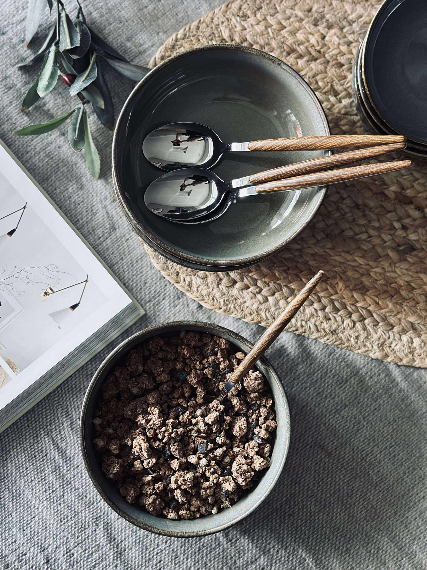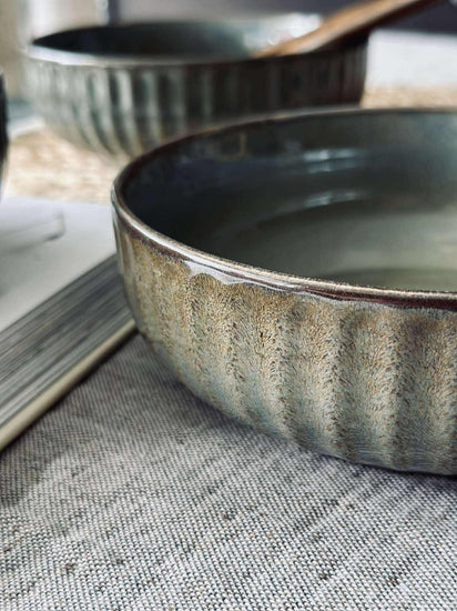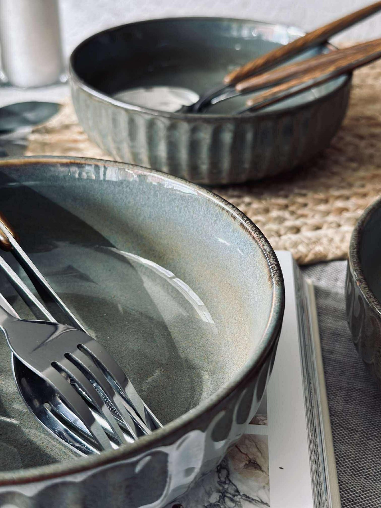 Stengods är ett robust material som ger skålen en hållbar och tålig konstruktion. Den tål både värme och kyla, vilket gör den idealisk för servering av olika maträtter, från varma soppor till kalla sallader. Materialets naturliga isoleringsegenskaper hjälper till att hålla maten vid rätt temperatur längre. Dessutom bidrar stengodsens naturliga struktur till en stilren och tidlös estetik i köket.
