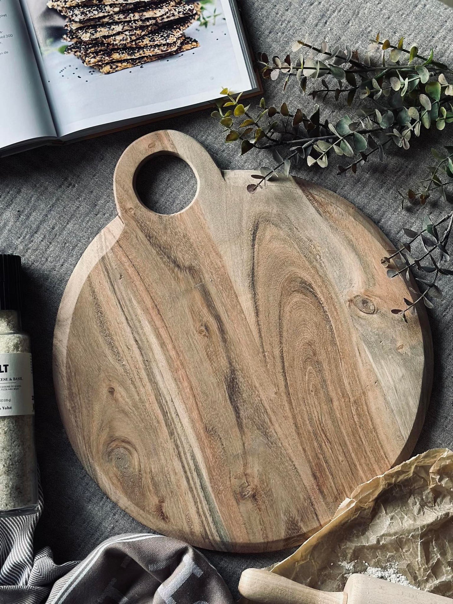 Skärbrädan är tillverkad av massiv akacia, vilket ger den en robust och hållbar yta som klarar av daglig användning i köket. Akacia är naturligt resistent mot fukt och bakterier, vilket bidrar till en hygienisk matlagningsmiljö. Dessutom ger träets varma toner en inbjudande estetik som kompletterar modern köksinredning. Kombinationen av funktionalitet och stil gör denna skärbräda till ett pålitligt val för både amatörer och erfarna kockar.