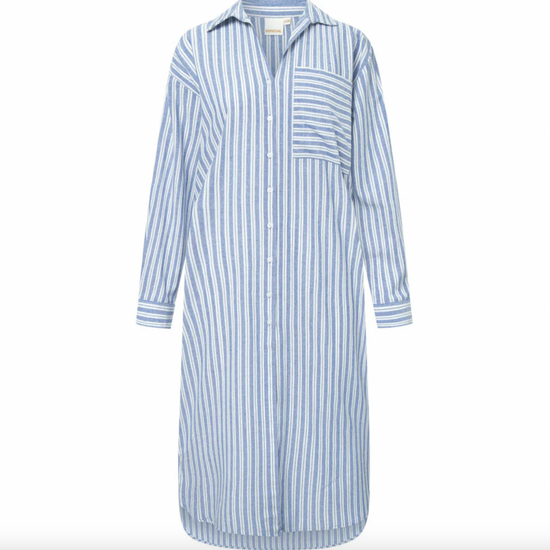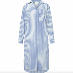Skapa en stilfull och bekväm look i sommar med skjortklänningen i randig bomull. Låt dig svepas in i en tidlös design som passar utmärkt för alla tillfällen. Upplev kombinationen av stil och komfort – din garderob kommer att tacka dig!