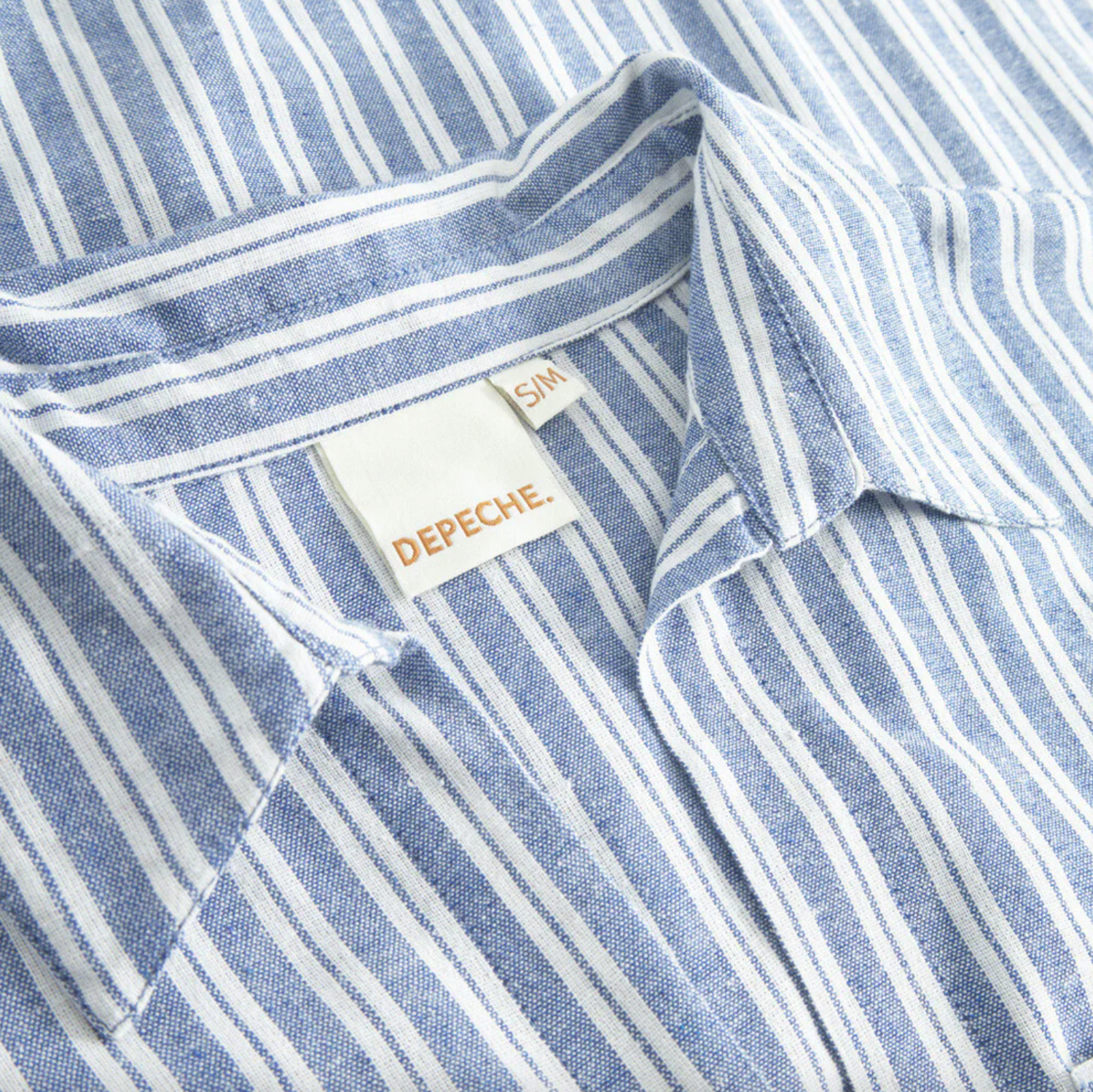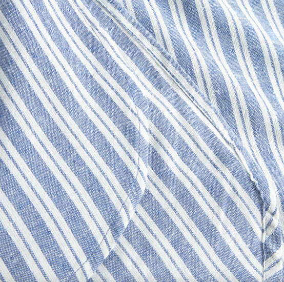 - Den har ett blått/vitt randigt mönster