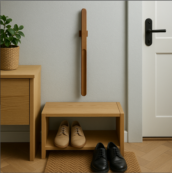 Detta skohorn med magnet är tillverkat av äkta trä, vilket ger en naturlig och tidlös känsla till ditt hem. Träets hållbarhet säkerställer att produkten står sig över tid, samtidigt som den erbjuder en skön och ergonomisk användarupplevelse. Den magnetiska funktionen gör att skohornet enkelt kan fästas på metalliska ytor, vilket håller det lättillgängligt och organiserat.