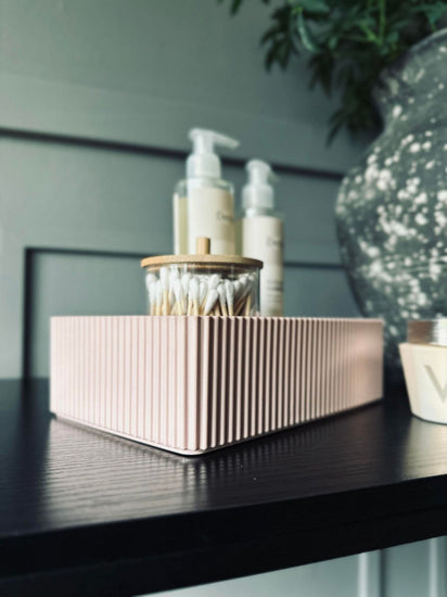 Ge ditt smink ett hem där det kan organiseras och visas upp på ett snyggt sätt. Slipp leta efter dina favoritprodukter och få en lugn och harmonisk morgonrutin. Skapa en vardagslyx för dig själv med Sminkorganisatören - Rosa!